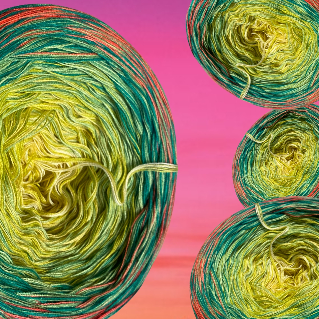 Tauche ein in die Welt der Farben mit unserem wunderschönen Farbverlaufsgarn, das in liebevoller Handarbeit gewickelt wurde.